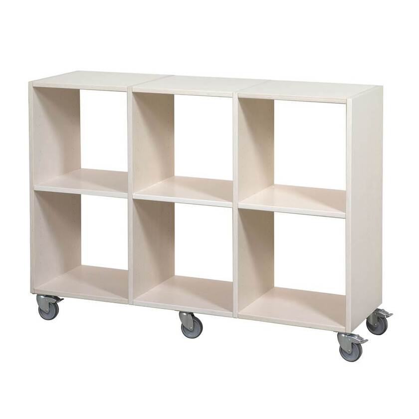 Kubhylla Kubus. Öppen med hjul, 6 fack, 3x2