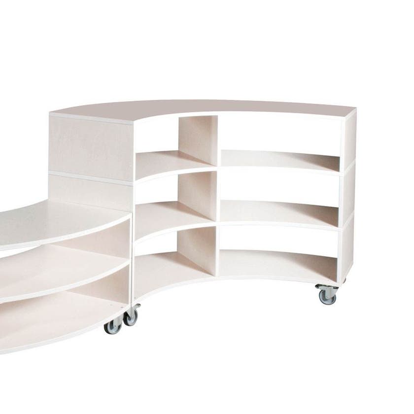 Turno är en svängd hylla med hjul, som kan kombineras samman för att skapa läckra formationer och avgränsningar samtidigt som Du får en rejäl förvaring.