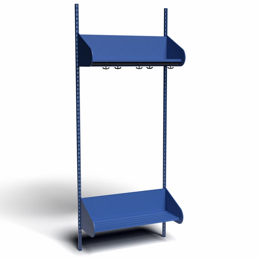 Flexibelt inredningssystem för entréer och kapprum. Tillverkat i pulverlackerad stålplåt med hög finish. Välj mellan en mängd olika standardfärger.