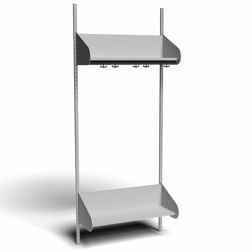 Flexibelt inredningssystem för entréer och kapprum. Tillverkat i pulverlackerad stålplåt med hög finish. Välj mellan en mängd olika standardfärger.