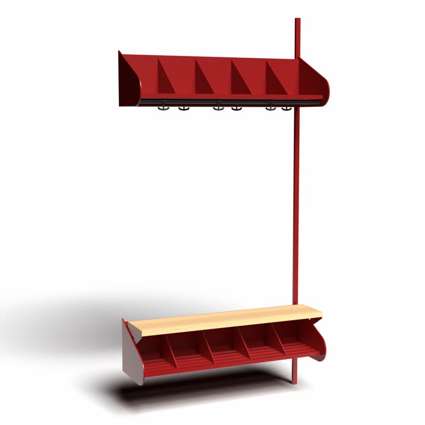 Inredningssystem BST, påb.sekt., 1000x300x270 mm, med bänk & m-vägg, 5 platser