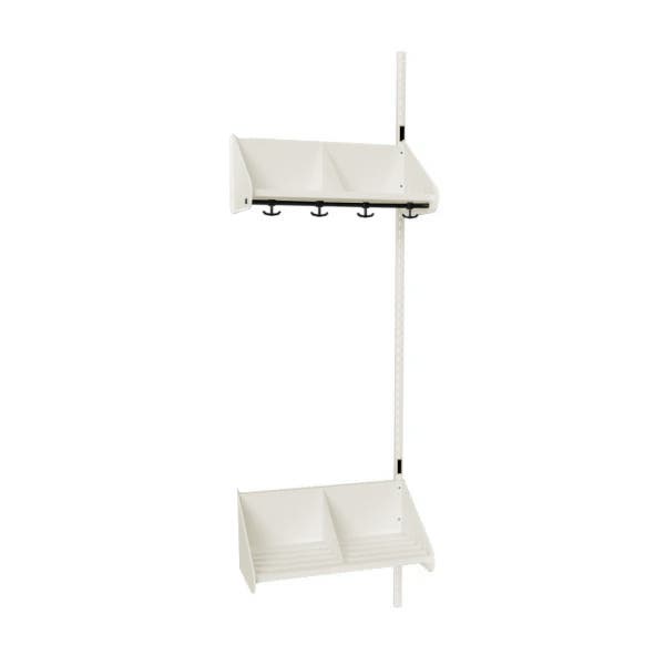 Det flexibla inredningssystemet avsett för entréer och kapprum. Enheterna i pulverlackerad stålplåt med hög finish. Påbyggnadssektionen består av 1 st väggskena längd 2000 mm, 1 st hatthylla samt 1 st skohylla. Hatt- och skohyllorna är avdelade med mellanväggar. Kroklist och dropplåt finns som tillval. Kan fås i 15 olika färger.