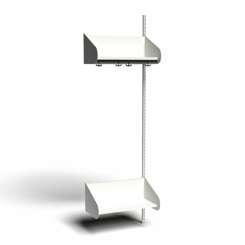 Flexibelt inredningssystem för entréer och kapprum. Tillverkat i pulverlackerad stålplåt med hög finish. Välj mellan en mängd olika standardfärger.