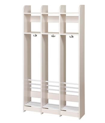 Troll är en högkvalitativ kapprumsinredning av 15/18 mm björkkryssfanér. Modulen monteras på vägg. Levereras komplett med hyllor och klädkrokar av rondelltyp (4 hängare/krok), som tillbehör finns även luckor för överfack. Troll 3-fack är valbar som björk natur klarlack eller vitpigmenterad björkkryssfanér. Varje sida består av björkkryssfanér i ett stycke med höjden 1500 mm. Varje fack har ett överfack, två klädkrokar i metall samt skohylla i metall som släpper igenom grus och smuts. Kapprumsinredning Troll har ett barnvänligt utförande med avrundade hörn och kanter. Totalt mått B810 x D250 x H1500 mm, bredd per fack 250 mm. Alla delar är inkluderade så att montering kan utföras vid leverans.
