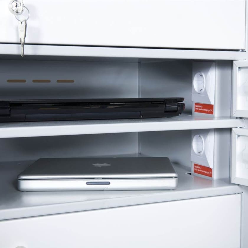 Laptop-vagn, 16 st låsbara fack med strömuttag, B1000xD510xH1200 mm