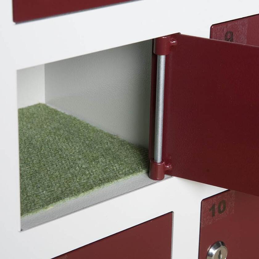 Vårt småfackskåp Mobil är ett praktiskt förvaringsskåp med 20 st låsbara fack i en modul. Passar utmärkt för förvaring av mobiltelefoner och smartphones, t.ex. i klassrum i skola. Varje lucka har ett cylinderlås där två nycklar ingår. Varje fack har en mjuk matta i botten, för att skydda det som förvaras i skåpet mot repor.