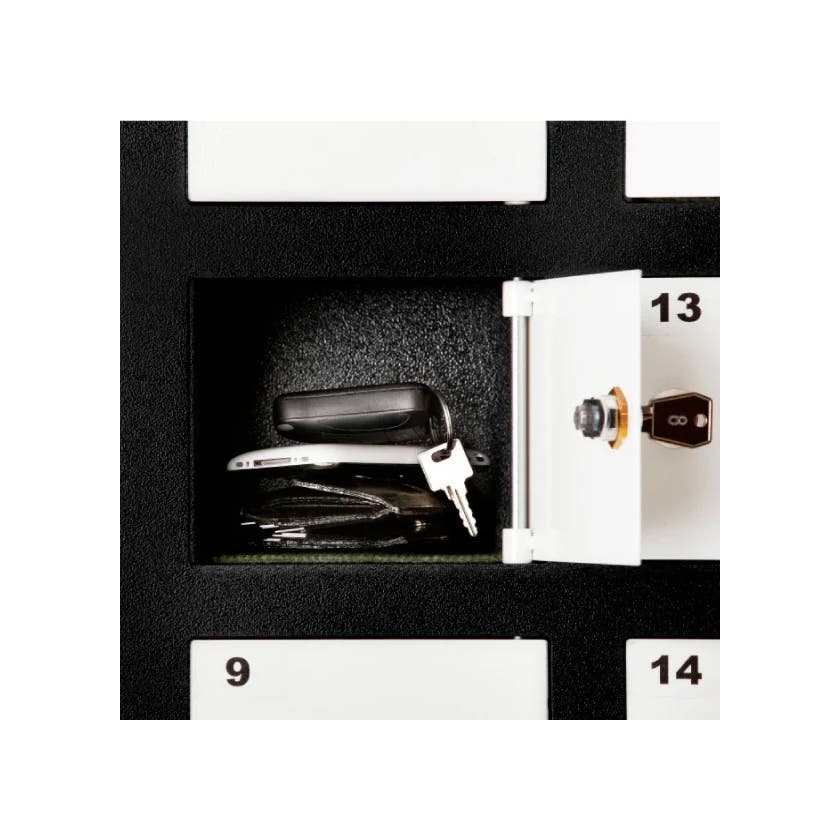 Praktiskt småfackskåp för förvaring av mobiltelefoner eller andra personliga tillhörigheter som plånbok och nycklar. Passar perfekt på skolor, i kontorslandskap, på träningsanläggningar eller andra miljöer där man behöver individuell förvaring.