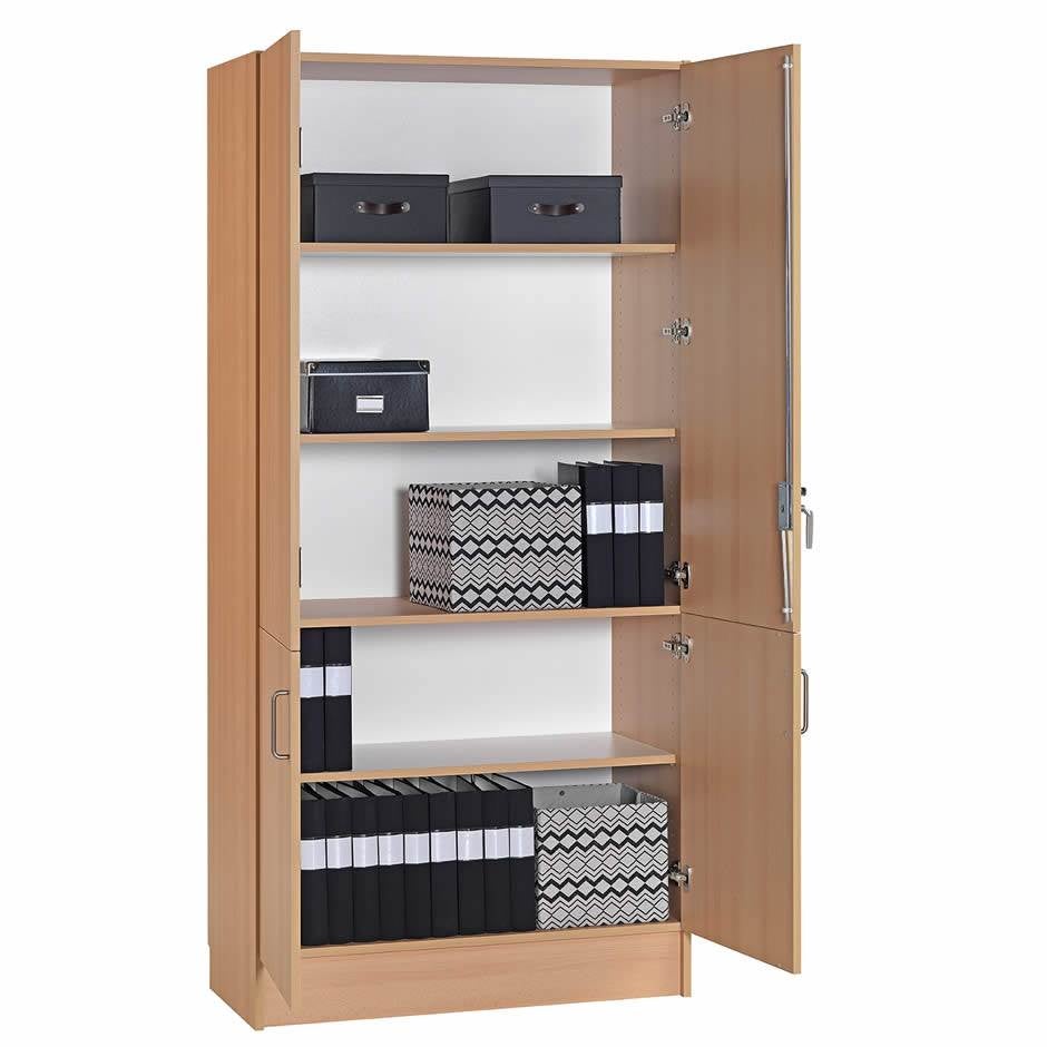 Kombiskåp av hög kvalitet med en mängd användningsområden. Tillverkat i bok-, björk- eller vit laminat med 19 mm stomme och dörrar, laminatdörrar i både över- och underskåp. Överskåpet är utrustat med spanjolett och spanjoletthandtag. Underskåpet har dörrar med bygelhandtag. Samtliga hyllplan är flyttbara med 32 mm intervall.