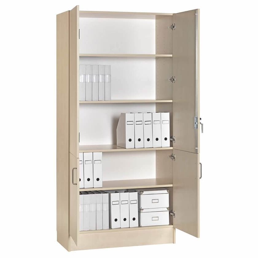 Kombiskåp av hög kvalitet med en mängd användningsområden. Tillverkat i bok-, björk- eller vit laminat med 19 mm stomme och dörrar, laminatdörrar i både över- och underskåp. Överskåpet är utrustat med spanjolett och spanjoletthandtag. Underskåpet har dörrar med bygelhandtag. Samtliga hyllplan är flyttbara med 32 mm intervall.