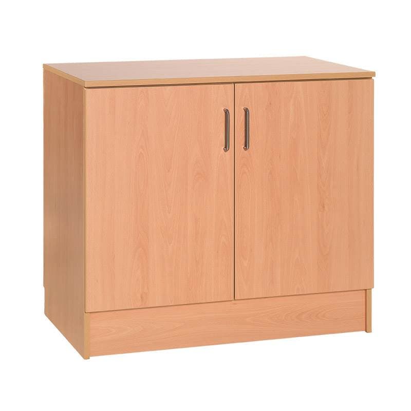 Låg-/bänkskåp med toppskiva, dubbla dörrar och två flyttbara hyllplan. Tillverkat i bok-, björk- eller vit laminat med 19 mm stomme och 16 mm dörrar. Hyllplanen är flyttbara med 32 mm intervall.