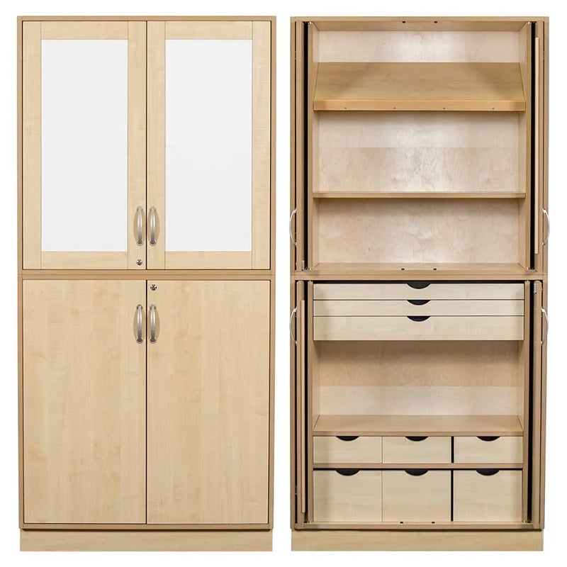 Ett robust, attraktiv och smart skåp för förvaring. Stomme och inredning i 18 mm björkplywood som ger både stabilitet och hållbarhet. Dörrar designade så att du enkelt kan skjuta in dem ut med skåpets sida.Inga mer svingande dörrar som är i vägen. Sjöbergs skåp kan inredas på många olika sätt för att möta behovet av förvaring av verktyg, textilier, kontorsmateriel, datorer m m. Välj björk-, whiteboard- eller glasdörrar.