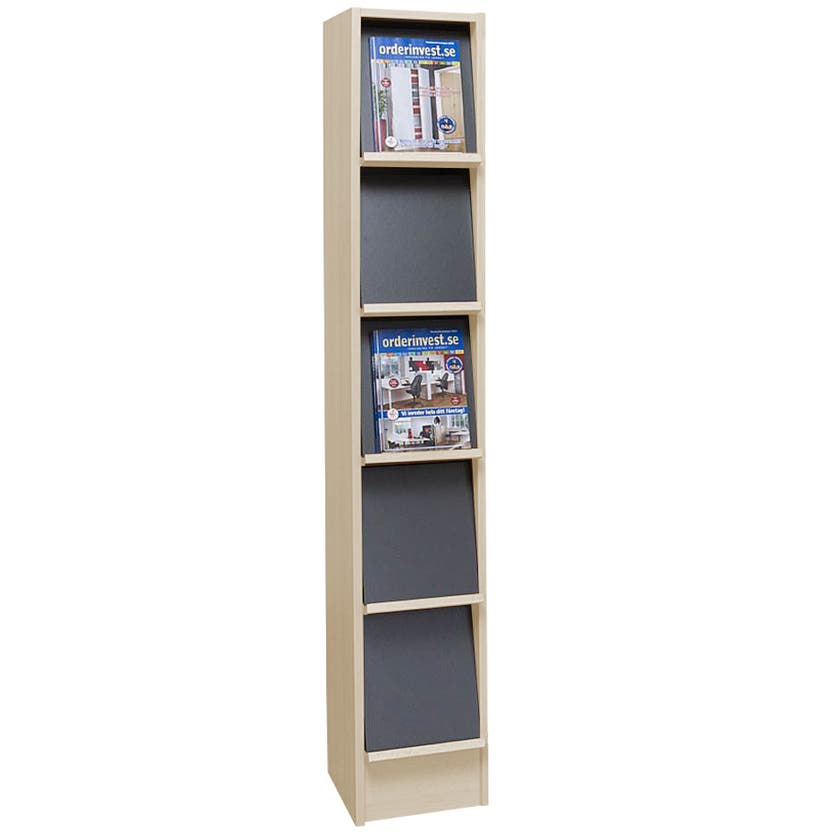 Tidskriftshylla Alvesta, med förvaringsmöjlighet, 5 fack, 292x400x1800 mm