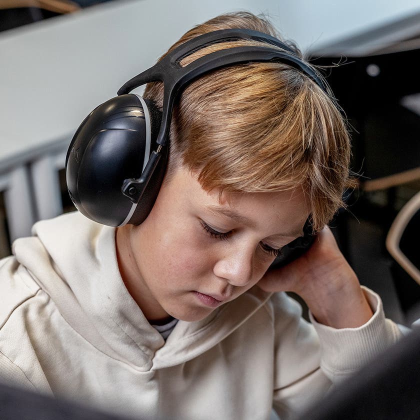 Ljuddämpande hörselkåpa som begränsar sinnesintryck och risken att bli distraherad. Genom att skärma av störande ljud ökar koncentration och inlärningsförmåga. Justerbar, vadderad bygel med bekväm passform och skonsamt tryck.