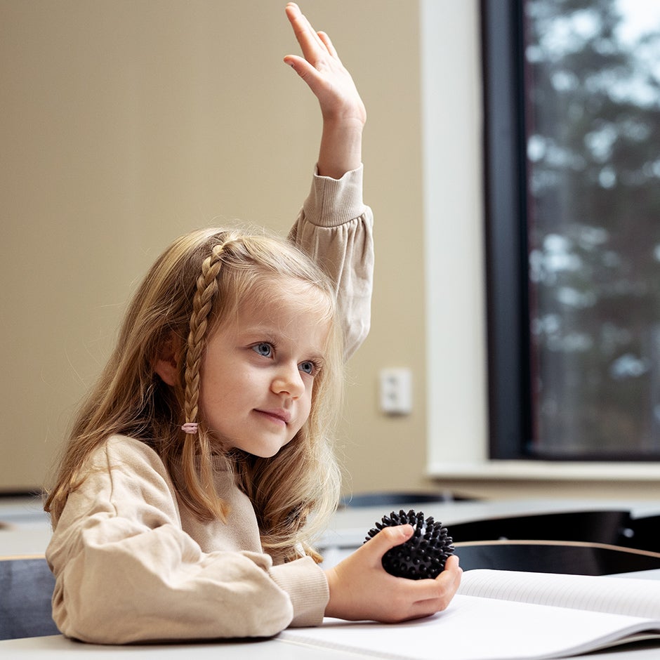 Greppvänlig massageboll med piggar, ett ergonomiskt och taktilt hjälpmedel som ger ökad blodcirkulation och stimuli. Ger en avslappnande känsla samtidigt som den tränar muskulaturen i hand och underarm. Kan rullas över hela kroppen på sig själv eller mellan elever. Bra att hålla i handen för att underlätta koncentration och inlärning hos elever som har svårt att sitta still.