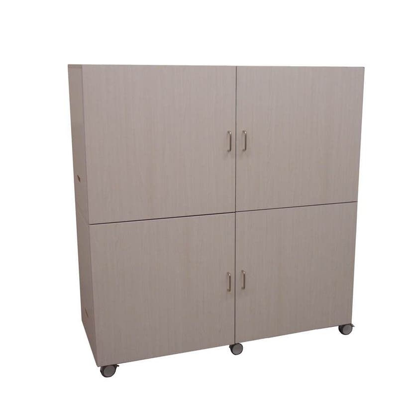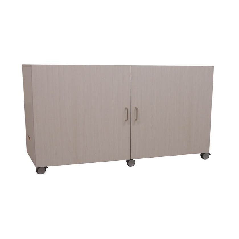 Liggande madrasskåp på hjul med plats för sju madrasser. Staplingsbar för dubbla antalet, se produktbild nr2. Tillverkad i 18 mm vitpigmenterad björkfanér.