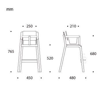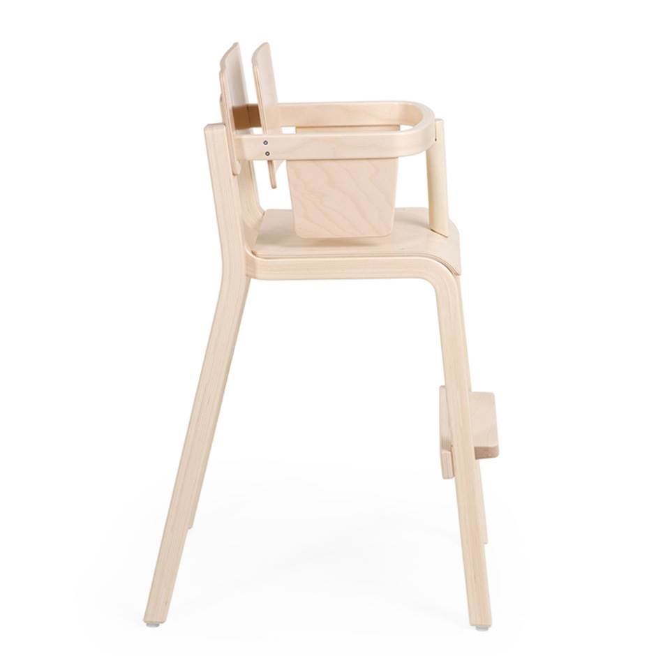 Barnstol Bella med säkerhetsbygel. Det extra ryggstödet på säkerhetsbygeln stöttar upp till rätt sittposition. Tillverkad av formpressad björk-plywood. Säkerhetsstödet är enkelt att ta bort med hjälp av insexnyckel. Fotstödet är möjligt att höjdjustera i 4 fasta höjder. Som standard med plastglidfötter, valbar med filttassar.