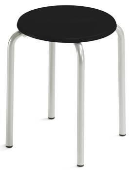Sits i bokfanér, välj mellan flera standardfärger. Stativ av svetsade, pulverlackerade stålrör. Som standard finns stativet i färgerna grå eller svart. Sitthöjd 460 mm. Pallen är staplingsbar.