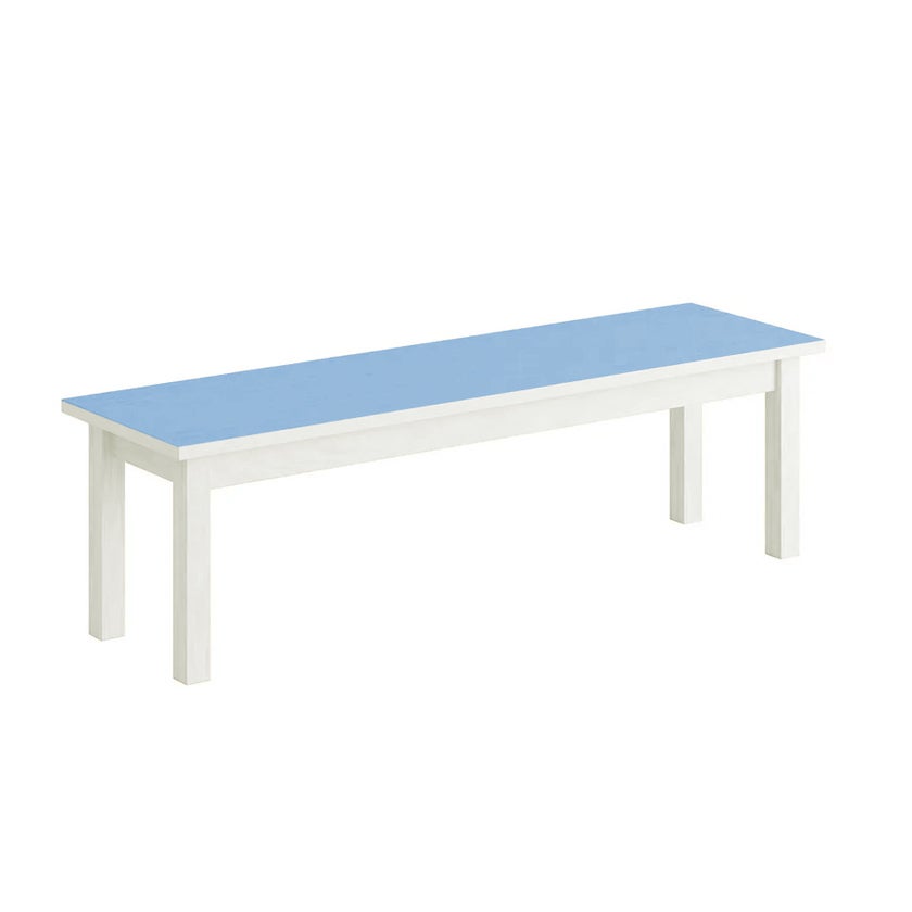 Sittbänk Erika, B1600 x D350 x H450 mm, ben massiv vitpigmenterad björk och sits av kryssfanér med Blå högtryckslaminat