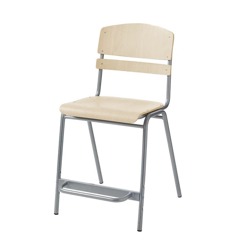 Stolen har silvergrått metallunderrede. Utrustad med metallfotstöd som är ställbart i fyra olika lägen i 50 mm intervall. Stolen har plastfot med ingjuten filttass, vilket gör att ljudnivån minskar.