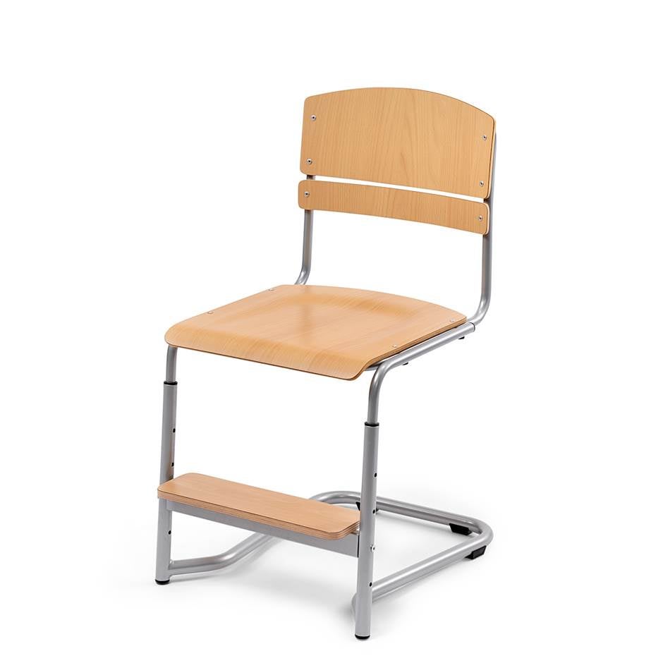 Classico vario – skolstolen som har justerbar sitthöjd samt justerbart fotstöd .