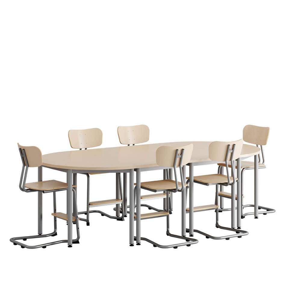 Stolen är byggd för de mindre eleverna, och är tillverkad enligt EN 1729. Klassificering 4-5 vilket innebär mest lämplig för bordshöjd 640 – 710 mm.