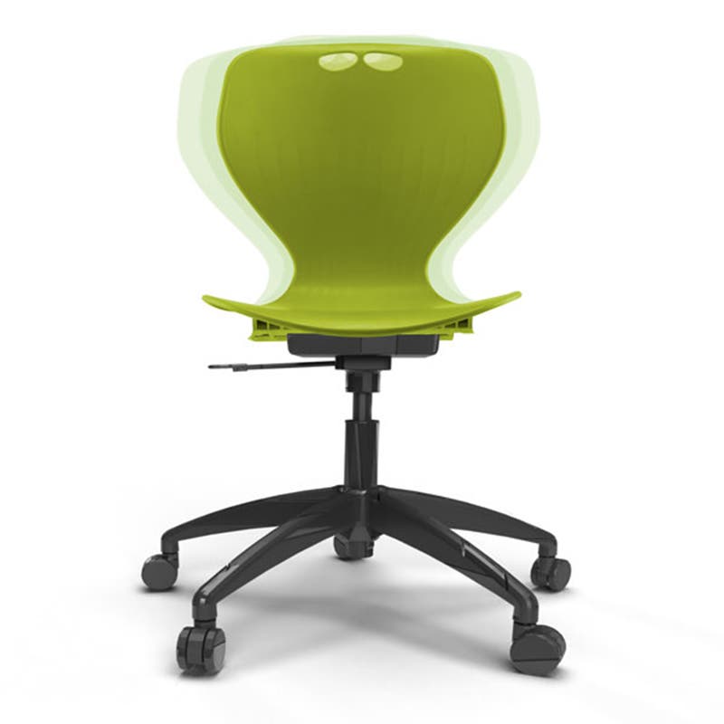 3D-funktionen innebär att stolen är utrustad med en unik mekanism som ger sitsen en lätt vippfunktion 360°. Ger en mycket följsam och bekväm sittkomfort. Grepphål i sittskalet gör stolen lätt att hantera vid städning och annan förflyttning.