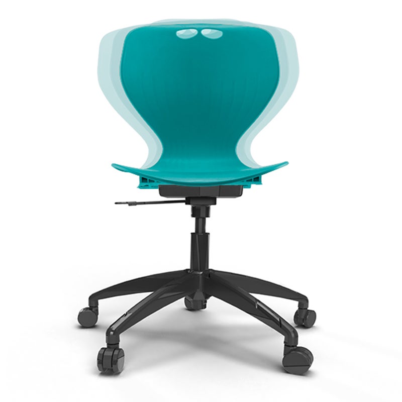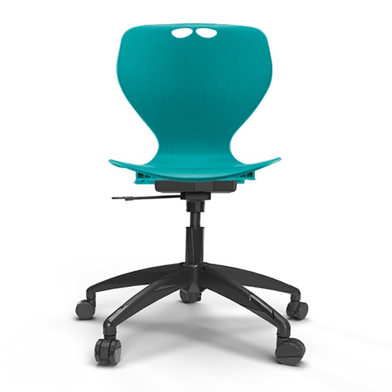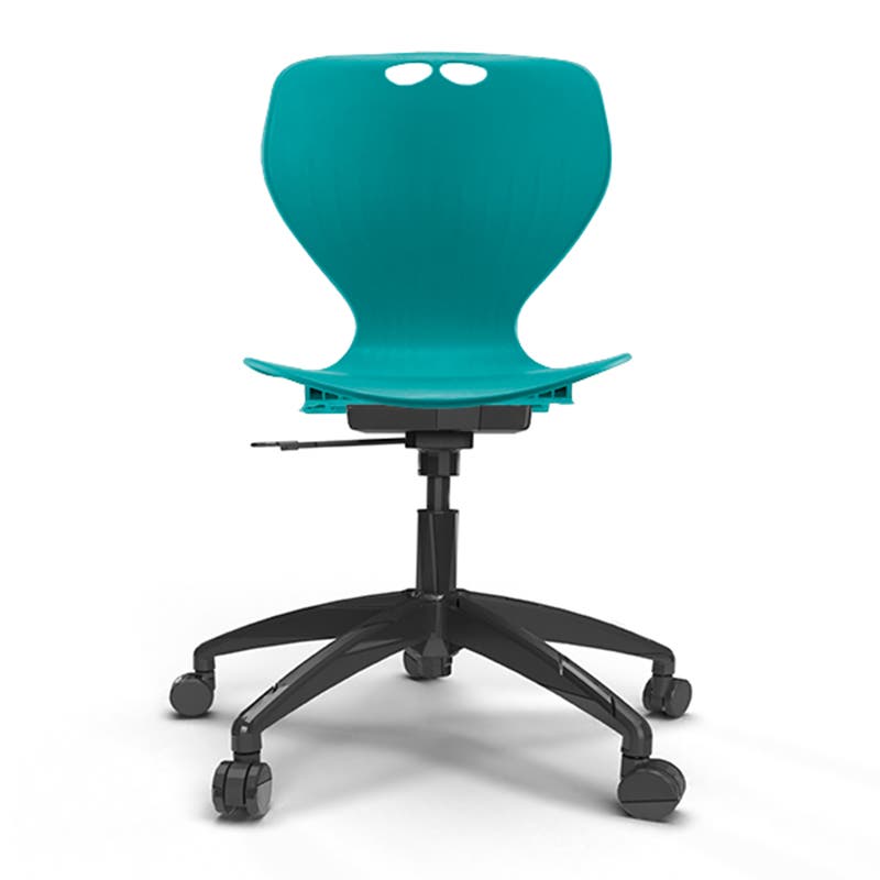 Stol Samba 3D, turkos sits med svart hjulkryss, sitthöjd 410-510 mm