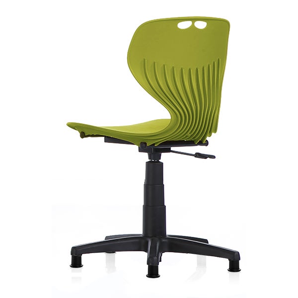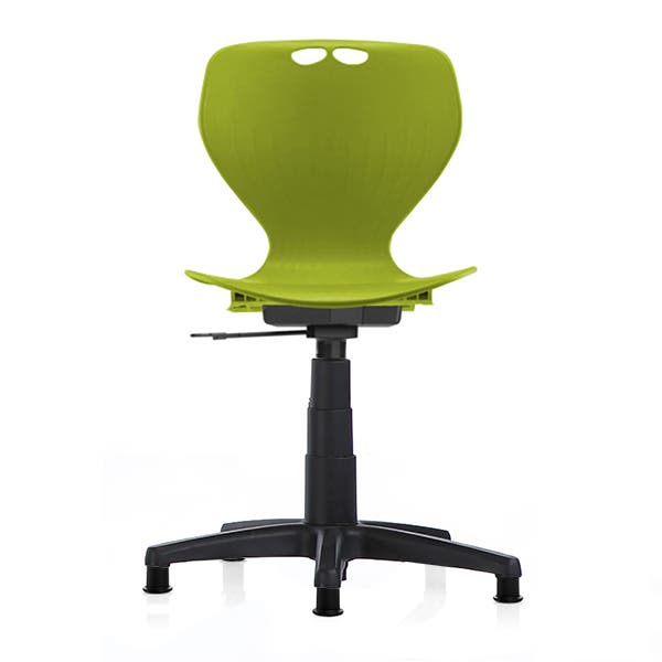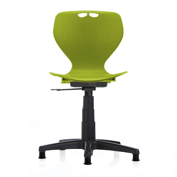 Stol Samba, olivgrön sits med svart hjulkryss på trumpetfot, sitthöjd 410-540 mm