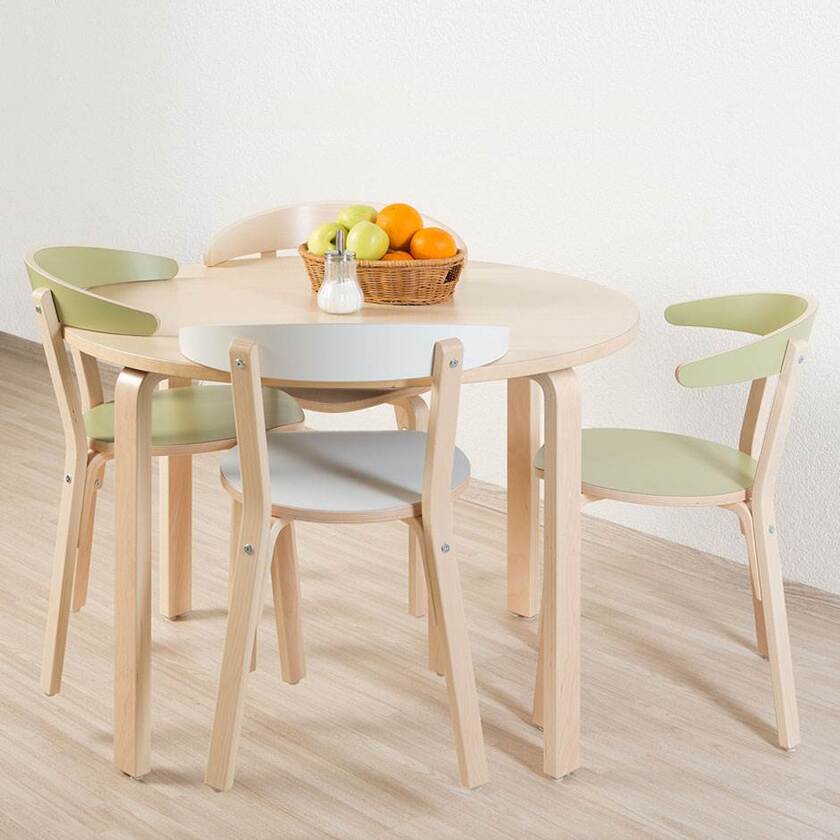 Stol Ellen i formpressad björk, med sits & rygg i laminat. Karmen ger en praktisk och stabil upphängning på bord. Med sits och rygg i slitstark laminat. Stolsben med filtfot. Sits Ø400mm, sitthöjd 455 mm, sittdjup 400 mm och totalbredd 510 mm. Stapelbar.