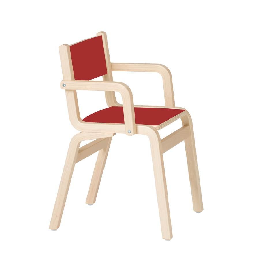 Stol i hög kvalitet, tillverkad i formpressad björk. Inga vassa kanter. Sits och rygg i laminat, finns i fyra färger. Sitthöjd 380mm