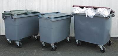 Två glasinkast i lock för avfallsbehållare. Lås ingår. Passar till avfallsbehållare med volym 500, 660, 770 och 1000 liter.
