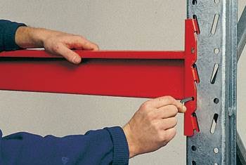 Bärbalken används i kombination med våra gavelstegar för att bygga ett komplett pallställ. Bärbalkens infästning i gavelstegen sker med friktionsband som ger ökad låsning vid ökad last. Bärbalken säkras mot oavsiktlig avlyftning med hjälp av en sprint. Gavelstegen levereras monterad och kan kompletteras med bultar för fastbultning i golv och påkörningsskydd för ökad säkerhet. Det kompletta pallstället kan sedan utrustas med en mängd tillbehör.