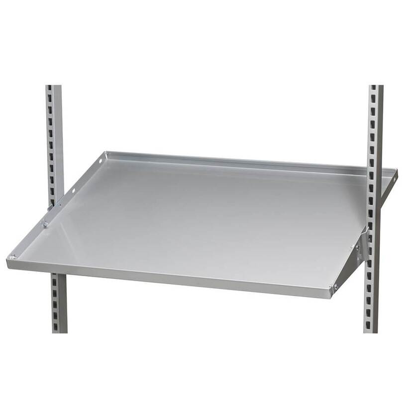 Hyllplan i plåt för montering på arbetsbord i Silverline serien. Hyllplanen monteras på pelare. Djup 210 mm. Bredd 875 mm, anpassad för pelare med cc mått 900 mm. Hyllplanet kan enkelt flyttas, upp och ner på pelarna, utan bultar. Inkluderat två konsoler.