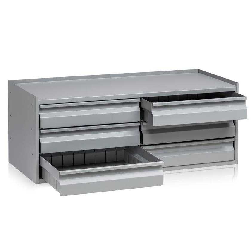 Lådfack med 6 utdragbara lådor, till verktygsskåp, B:970 x D:450 x H:365 mm