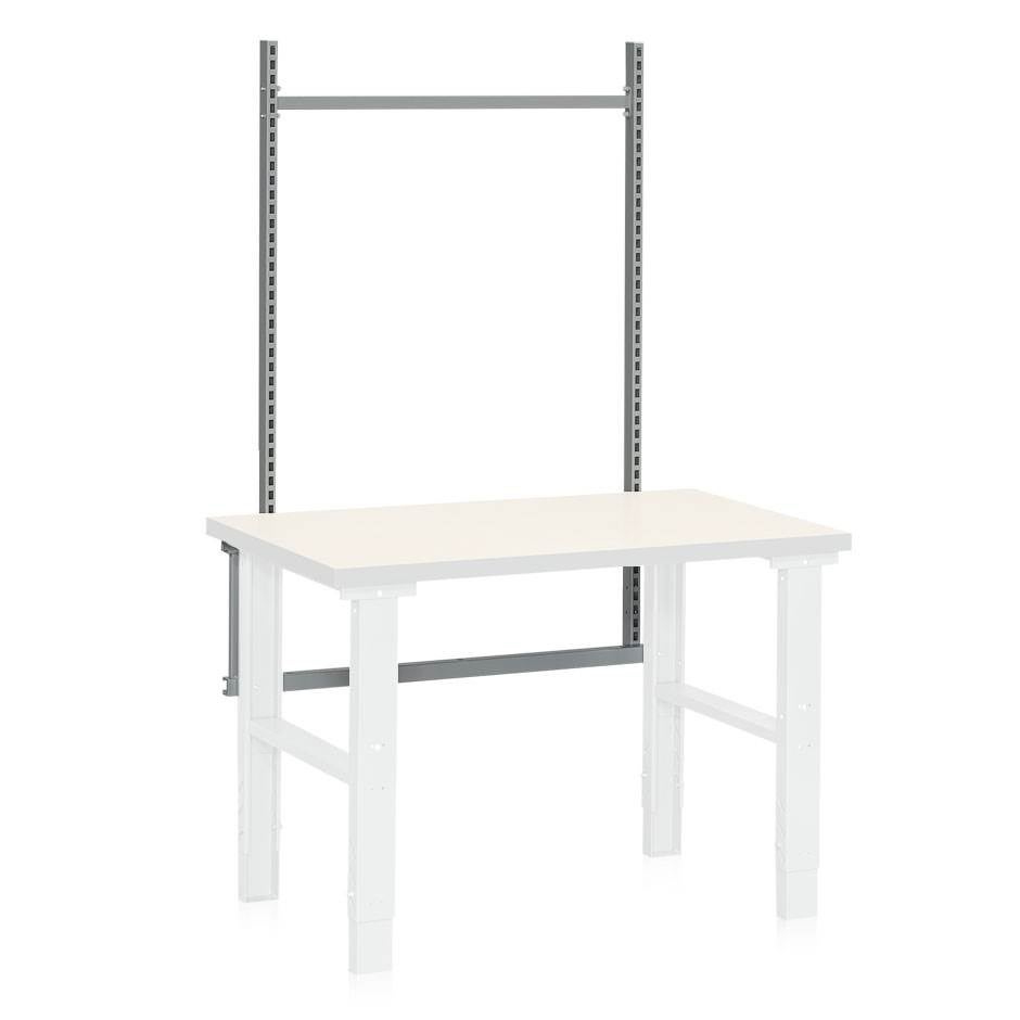 Tillbehörskit som består av 2 perforerade pelare (1448 mm), mellanstag (875 mm), 2 monteringssatser för pelare och påbyggnadsram (1129 mm). Efter montering av pelarna går det sedan bra att skapa en flexibel arbetsstation efter eget önskemål genom att montera fast olika tillbehör som hyllor, verktygspaneler mm. Pelarna är tillverkade av pulverlackerade stålprofiler. Passar till arbetsbord med längd 1200 mm.