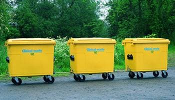 Praktiskt drag till våra avfallsbehållare 660 och 1000 liter, som gör det möjligt att koppla samman behållare till ett "tåg" och förflytta många dem samtidigt.