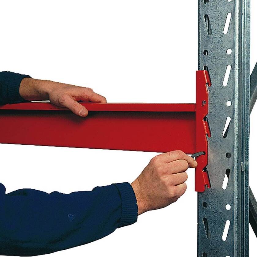 Säkerhetssprint till bärbalk för pallställ. Säkrar balken mot oavsiktlig avlyftning.