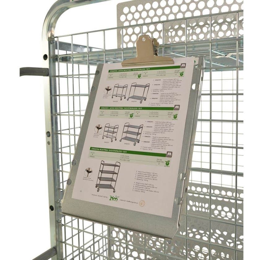 Med vår praktiska skrivpulpet har du alltid ett jämnt och bra underlag att anteckna på. Skrivpulpeten monterar du enkelt på din vagn. Levereras komplett med klämma, där du enkelt kniper fast de papper du behöver. Hög kvalitet i tåligt, galvaniserat utförande.