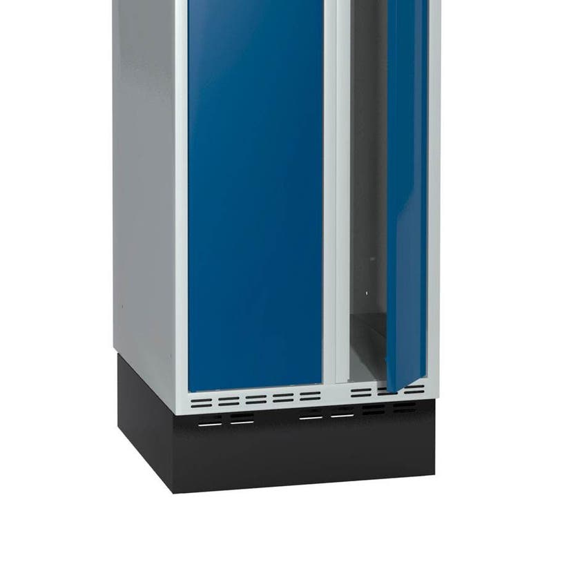 Sockel ger ett lugnt och fräscht uttryck till skåpen. Den hindrar dessutom att skräp samlas under skåpet. Sockeln är i svart stå med ventilationsslitsar. Höjd 150 mm. Monteras med skruv genom skåpets botten.