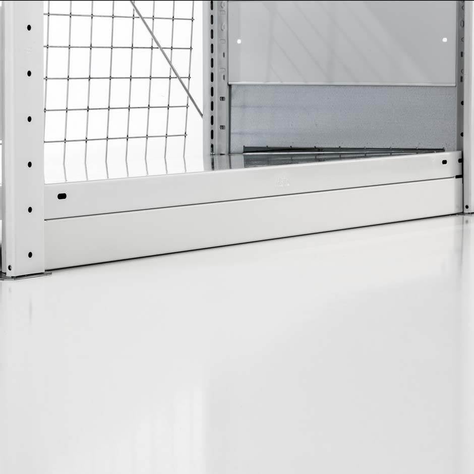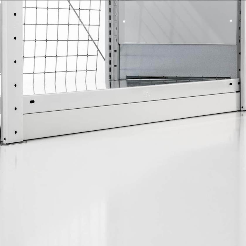 Sockelplåt för stålhylla Meta Quick. Mått B1000 x H56 mm. Lackerad i ljusgrå färg (RAL 7035).