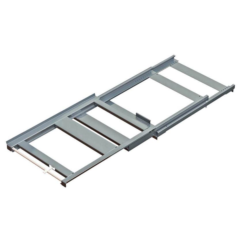 Denna balkmonterade enhet har 100% utdrag, vilket är en fördel i de fall du behöver nå mindre komponenter långt bak i pallen. Det är även en fördel om tyngre komponenter ska lyftas med travers. Kapacitet: 600 kg. Galvaniserat utförande.