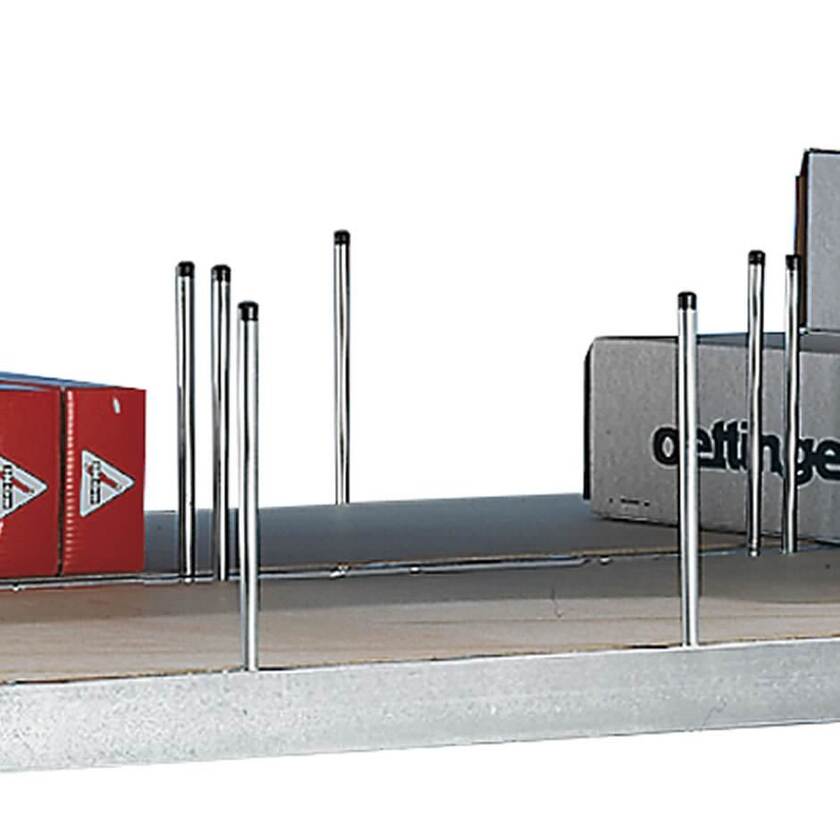 Vertikalspjut till lagerhylla Meta Mini-Rack. Används fackavdelning på ett hyllplan. Vertikalspjutet sätts i hål i balken och är flyttbart i 200 mm intervall.